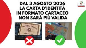 Notizia relativa alla cessazione della validità della carta d'identità cartacea dal 3 agosto 2026